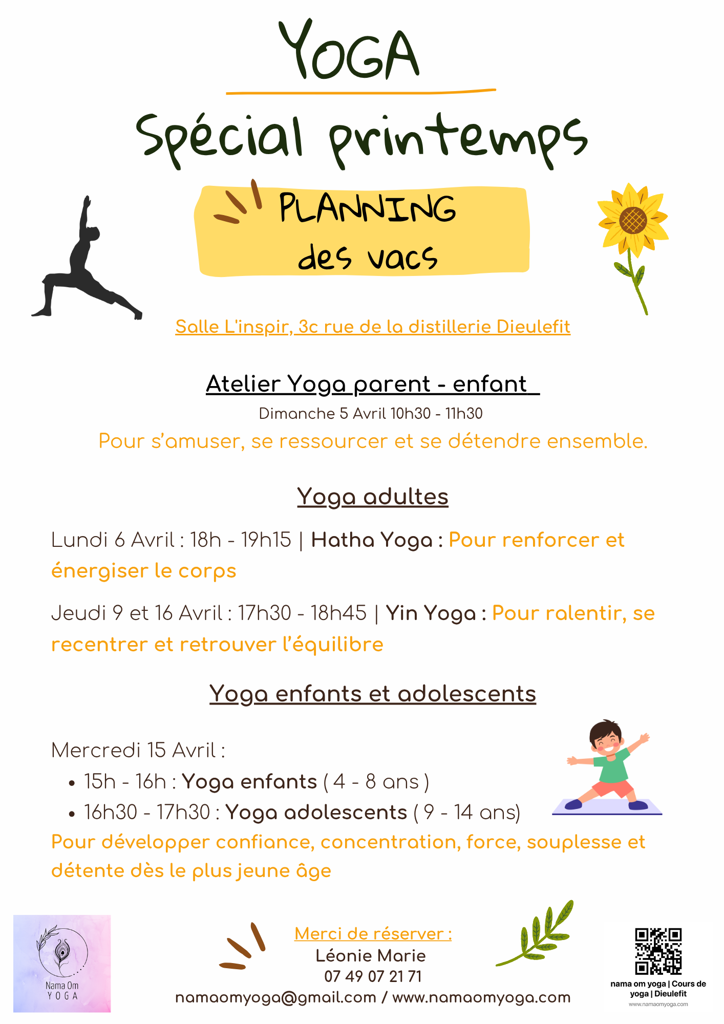 Envie de bouger, respirer et partager un vrai moment de bien-être ce printemps ? 💛 Un planning spécial vacances pour petits & grands !