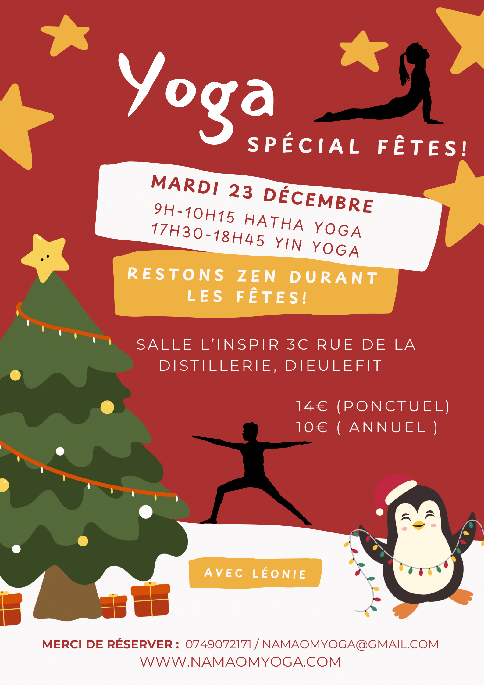 9h Hatha Yoga 17h30 Yin Yoga Yoga adultes spécial fêtes pour rester zen au repas de Noël 🎅 🌲😅 Un moment de détente pour ce faire du bien au corps et au cœur, ouvert à tous.